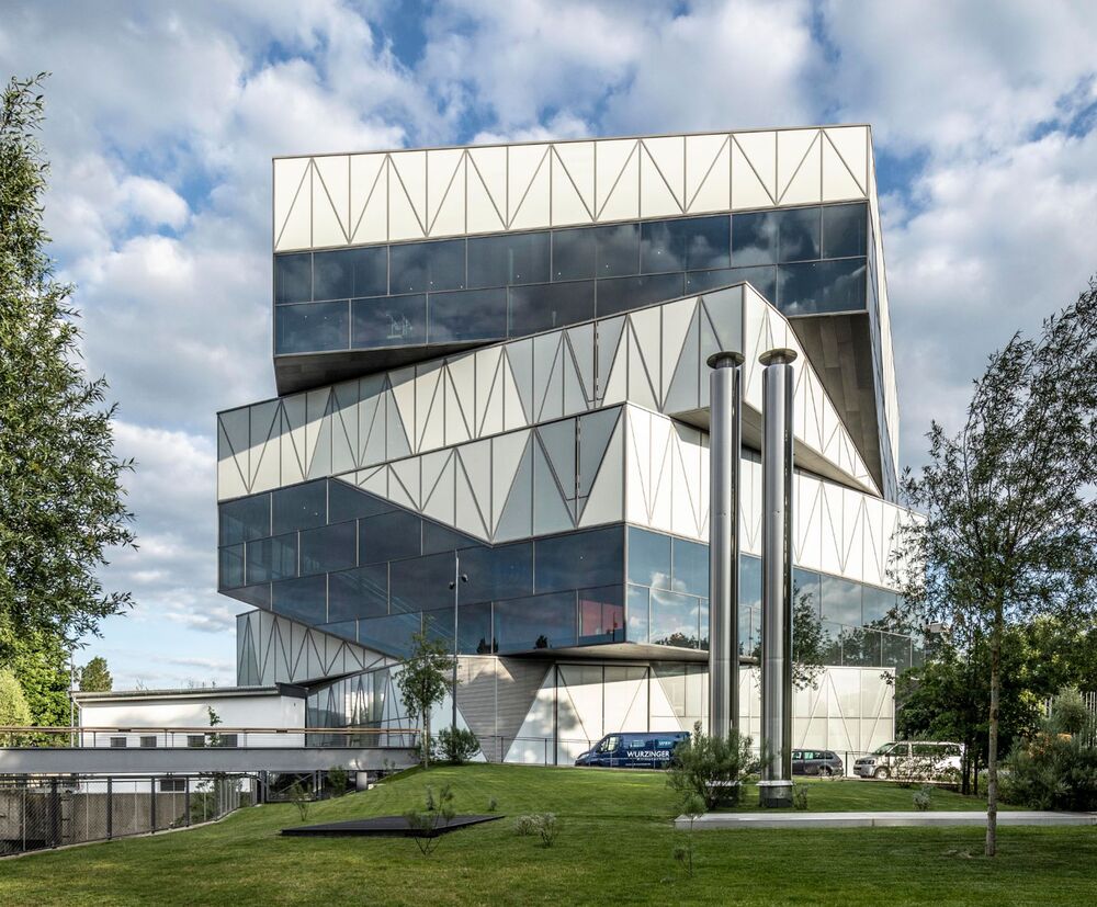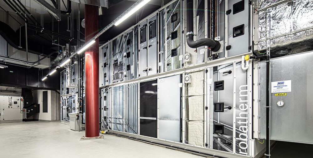 Le fait que l’Experimenta est un nouveau bâtiment tout-à-fait particulier se voit aussi dans la technologie de traitement d’air. Afin de pouvoir donner un aperçu du fonctionnement d'une centrale de traitement d'air, l’intérieur de l’une des 7 CTA de robatherm a été photographié avant la pose des thermo-panneaux. La CTA a ensuite été entièrement assemblée, puis recouverte par les photographies.