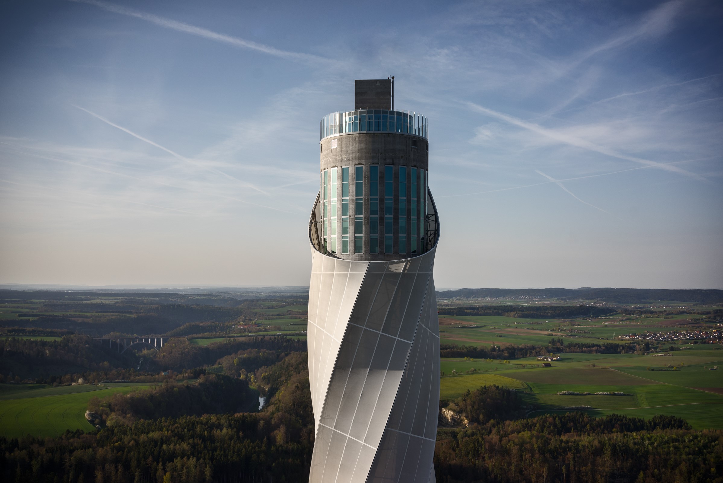 Avec une hauteur de 246 mètres, la tour d'essai ThyssenKrupp à Rottweil compte parmi les plus grands bâtiments d'Allemagne et est également le plus haut bâtiment au monde avec une façade textile. ThyssenKrupp utilise la tour d'essai pour les tests et les mesures de certification des ascenseurs à grande vitesse. Une de ses spécificités : un pendule en béton à l'intérieur de la tour, à une hauteur de 200 mètres. Ce pendule permet de faire osciller la tour de manière ciblée afin que les ingénieurs de développement puissent simuler des charges de vent ou de séisme réelles.