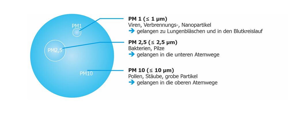 Verschiedene Studien, unter anderem von der Weltgesundheitsorganisation (WHO) initiiert, beschäftigen sich mit den Auswirkungen von Feinstaub auf die menschliche Gesundheit. Die Ergebnisse sind eindeutig. Die Luftverschmutzung und speziell besonders kleine Partikel in der Luft sind gesundheitsschädlich und führen zu teils tödlichen Atemwegs- und Herz-Kreislauferkrankungen. Diese Partikel werden in unterschiedliche PM-Klassen kategorisiert, nämlich PM1 (aerodynamischer Durchmesser ≤ 1 μm), PM2,5 (≤ 2,5 μm) und PM10 (≤ 10 μm). Die Abkürzung PM steht für „Particulate Matter“, d.h. Feinstaub.