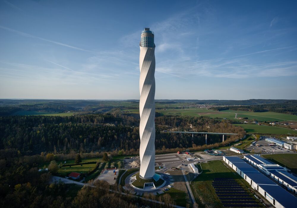 Avec une hauteur de 246 mètres, la tour d'essai ThyssenKrupp à Rottweil compte parmi les plus grands bâtiments d'Allemagne et est également le plus haut bâtiment au monde avec une façade textile. ThyssenKrupp utilise la tour d'essai pour les tests et les mesures de certification des ascenseurs à grande vitesse. Une de ses spécificités : un pendule en béton à l'intérieur de la tour, à une hauteur de 200 mètres. Ce pendule permet de faire osciller la tour de manière ciblée afin que les ingénieurs de développement puissent simuler des charges de vent ou de séisme réelles.